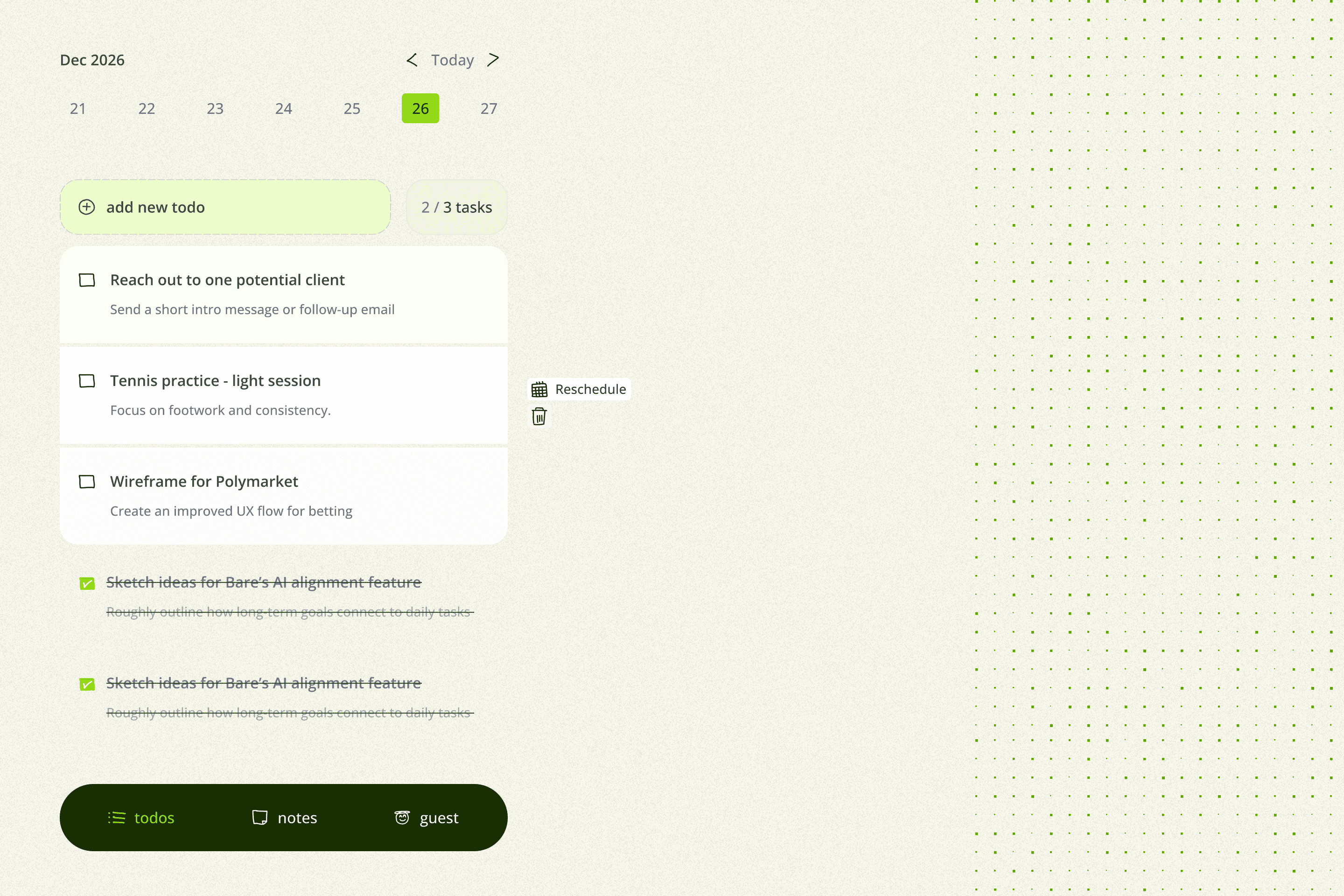 shipped a working product now used by friends and early adopters for daily planning and goal tracking