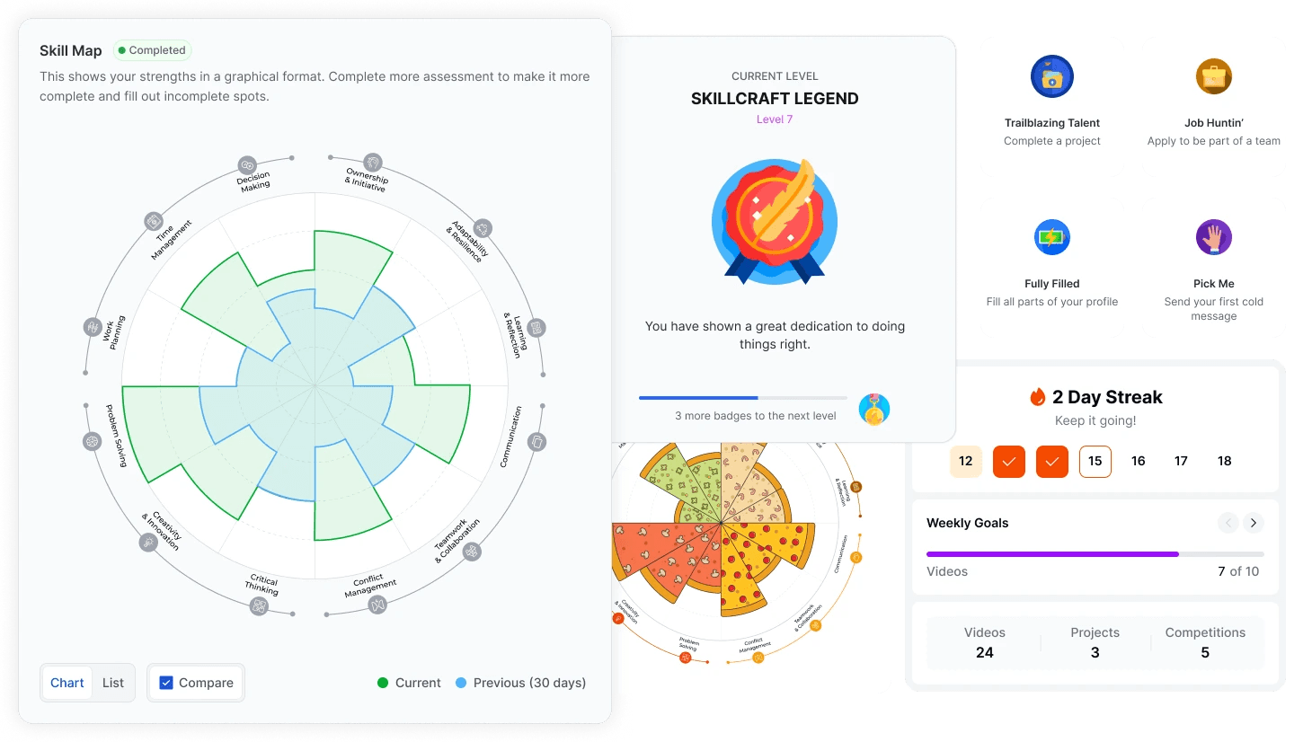 introduced gamification systems (badges, streaks, skill maps) to drive engagement and retention